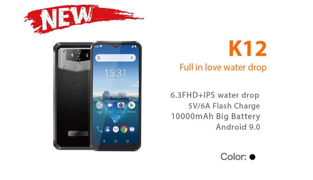 Insieme a K9, è stato svelato K12 che presenta anch’esso uno schermo waterdrop. Ma viene fornito con un display FHD + IPS da 6,3 pollici. Il design posteriore riprende il retro in pelle. E’ presente una batteria grande da 10000 mAh e con la nuova carica rapida da 5 V / 6 A, la batteria si potrà caricare in meno di 2 ore.